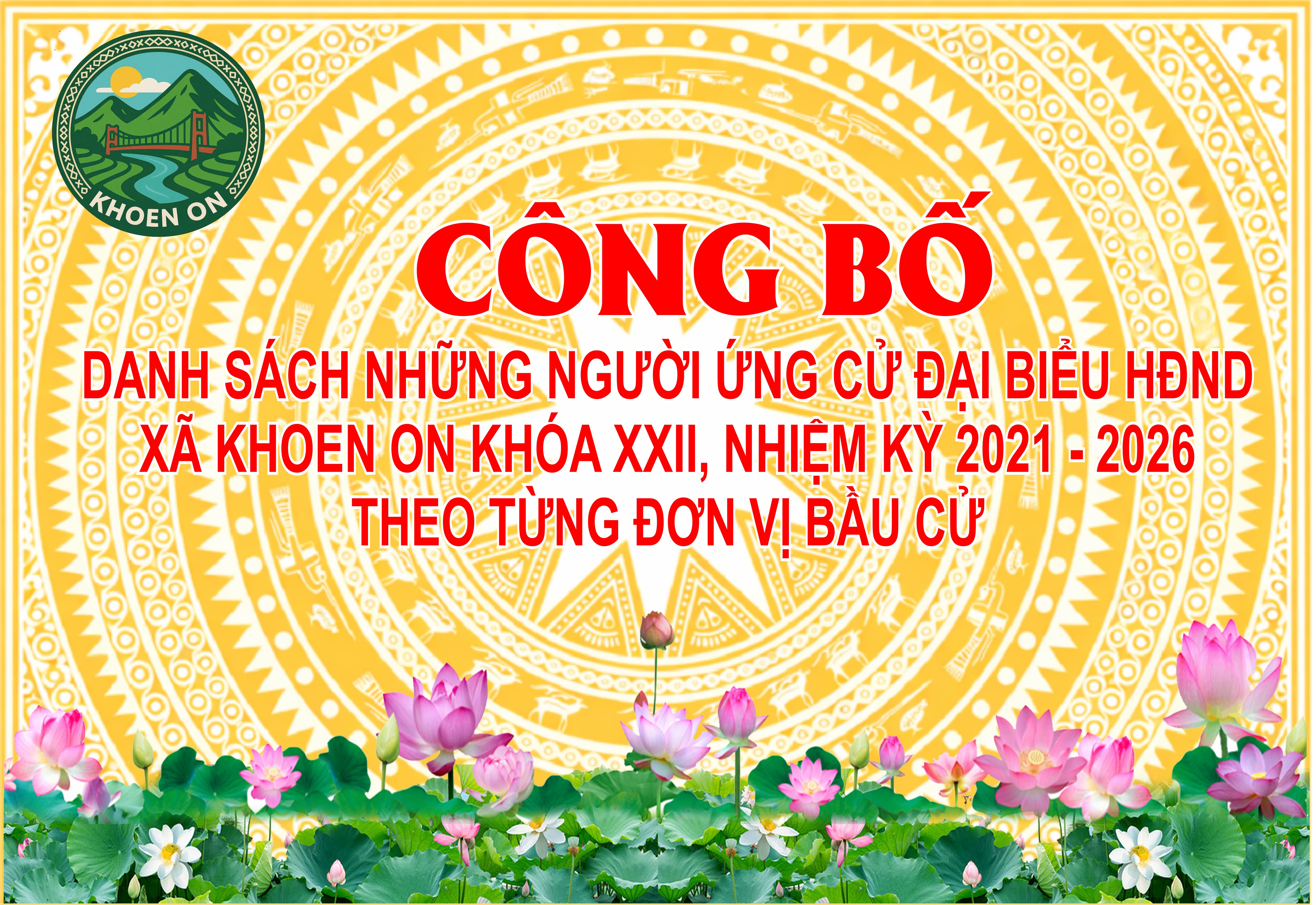 Công bố danh sách những người ứng cử đại biểu Hội đồng nhân dân xã Khoen On khóa XXII, nhiệm kỳ 2026 - 2031 theo từng đơn vị bầu cử