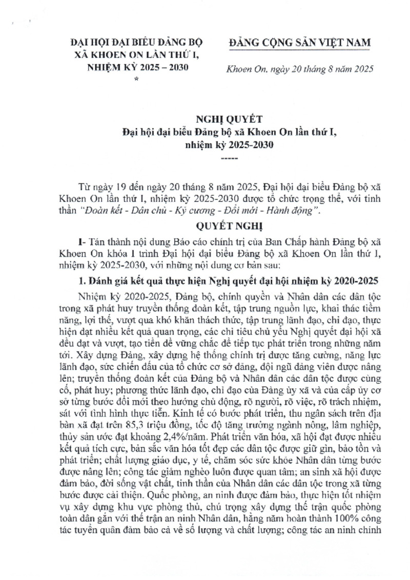 | Tiêu đề văn bản | Nghị quyết Đại hội Đảng bộ xã lần thứ nhất, nhiệm kỳ 2025 - 2030 | ||
