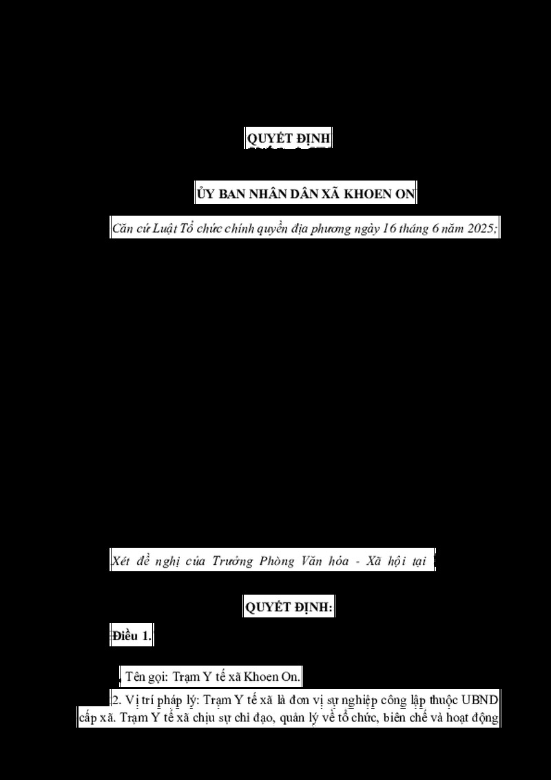 | Tiêu đề văn bản | Quyết định Thành lập Trạm Y tế thuộc UBND xã Khoen On | ||