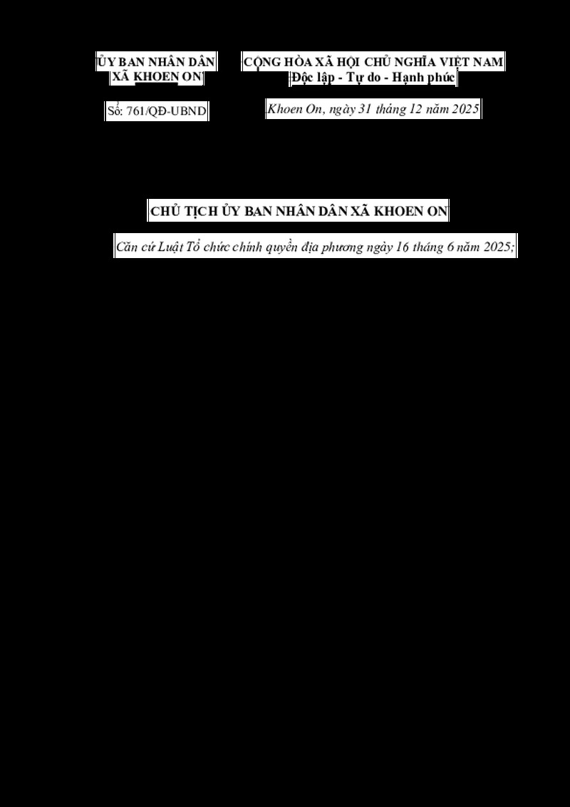 | Số hiệu | 761/QĐ-UBND | Cơ quan ban hành | UBND xã Khoen On |