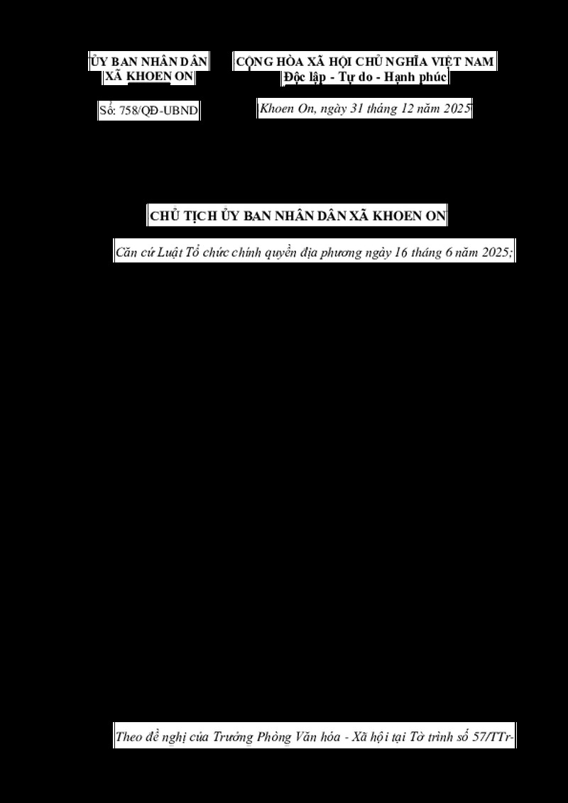 | Số hiệu | 758/QĐ-UBND | Cơ quan ban hành | UBND xã Khoen On |