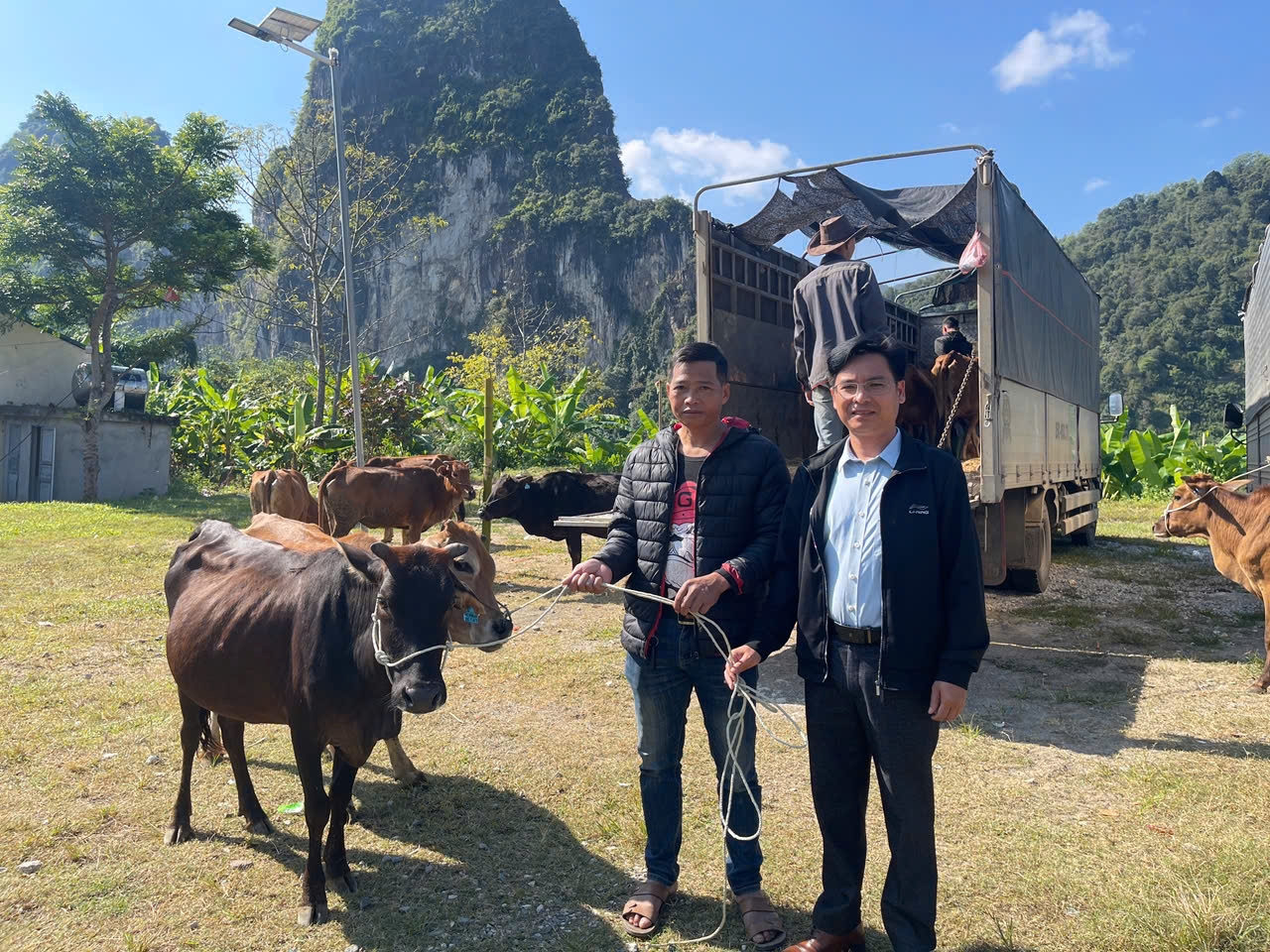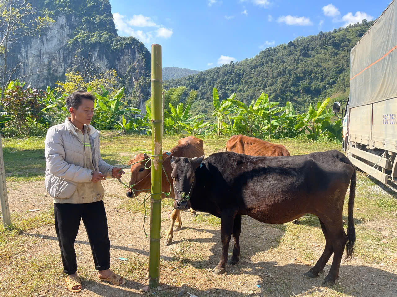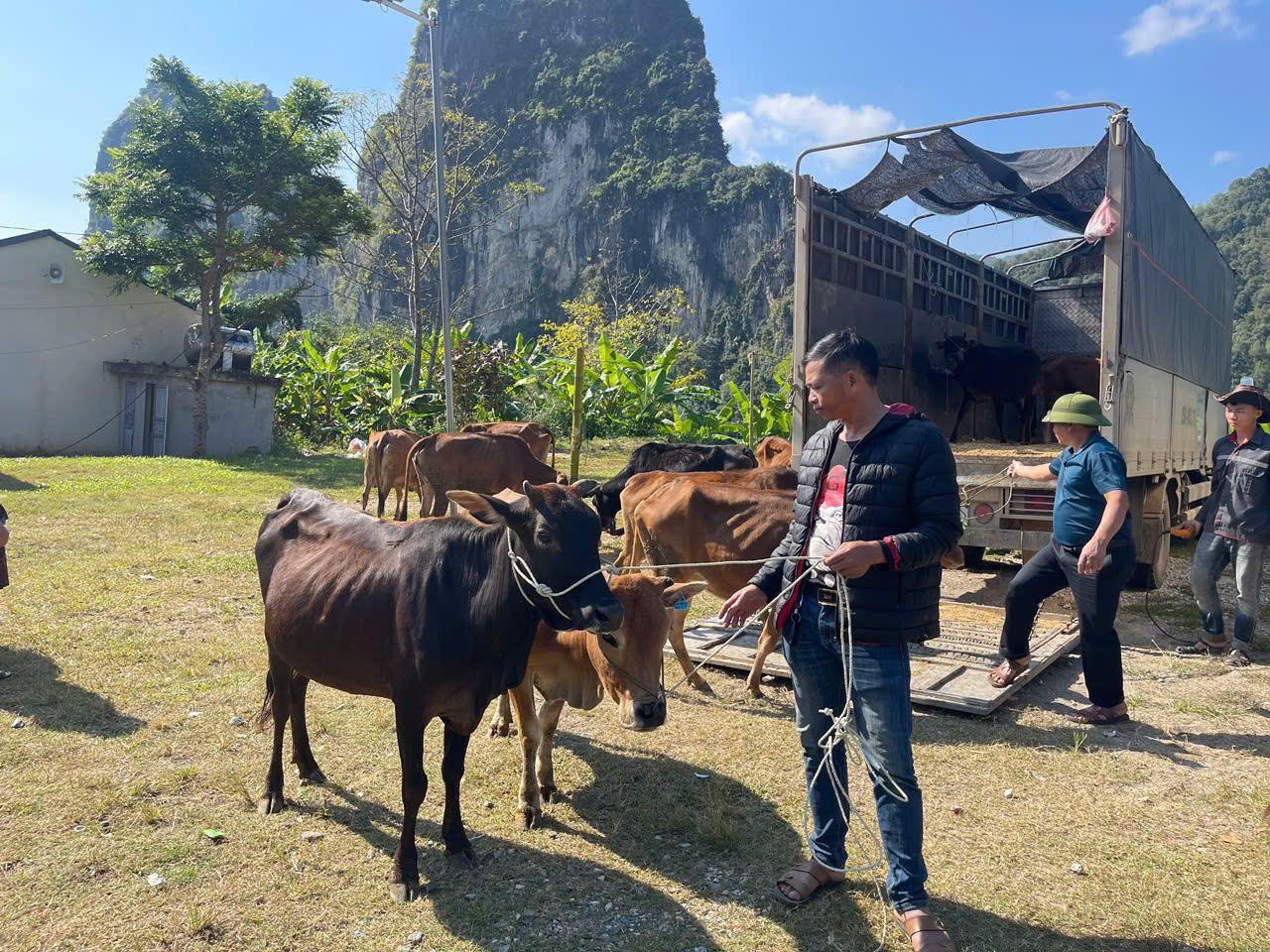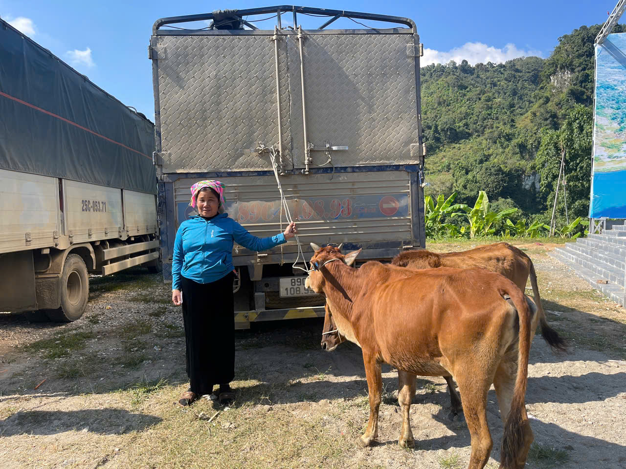 Tại buổi bàn giao, các hộ dân đã trực tiếp nhận bò giống dưới sự chứng kiến của đại diện lãnh đạo xã, cán bộ chuyên môn và ban quản lý các bản. Qua kiểm tra thực tế, đàn bò được bàn giao đảm bảo đúng tiêu chuẩn giống, khỏe mạnh, thích nghi với điều kiện tự nhiên tại địa phương. Hình ảnh ghi nhận cho thấy bà con vui mừng, phấn khởi khi được tiếp nhận nguồn hỗ trợ quan trọng này.