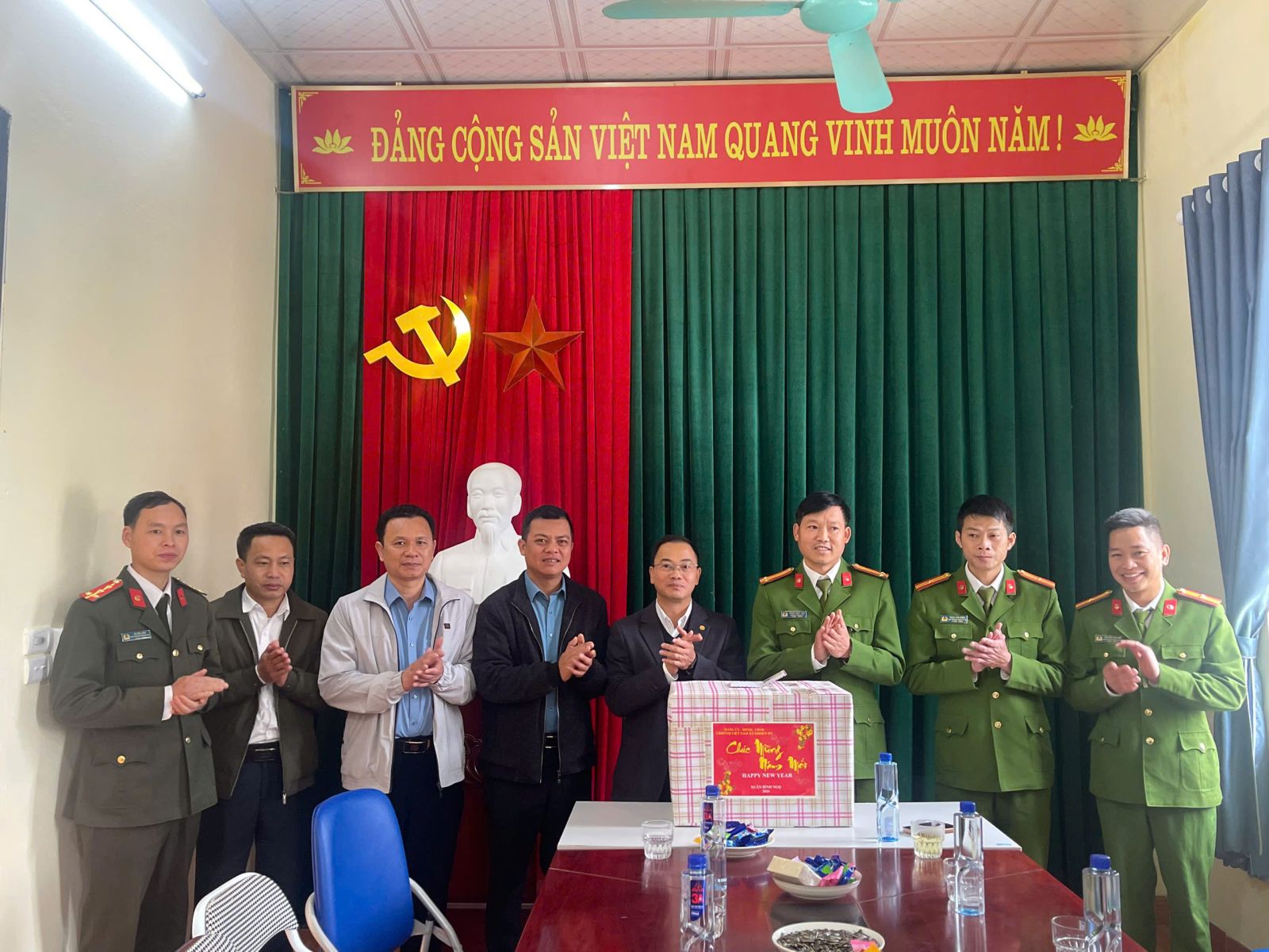 Thường trực đảng uỷ, HĐND, UBND, UBMTTQ Việt Nam xã chúc Tết cán bộ, chiến sỹ công an xã Khoen On