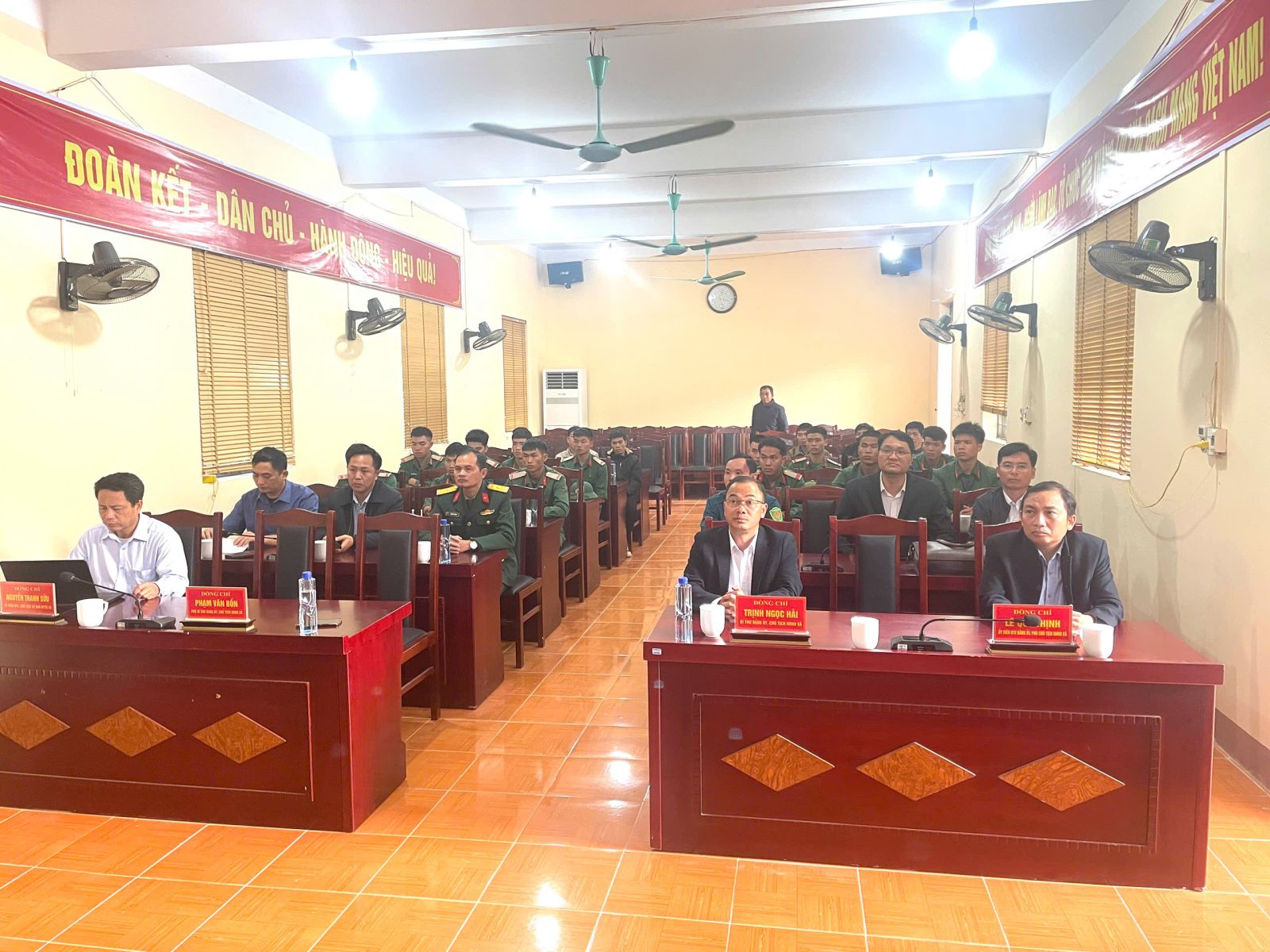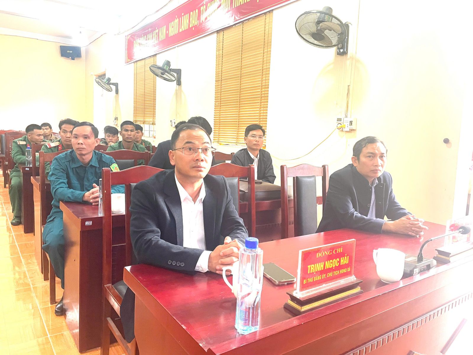Tham dự buổi gặp mặt có đồng chí Trịnh Ngọc Hải- Bí thư Đảng ủy, Chủ tịch HĐND xã, lãnh đạo Đảng ủy, HĐND- UBND - Ủy ban MTTQVN xã, cùng đông đảo quân nhân vừa hoàn thành nghĩa vụ quân sự và xuất ngũ.