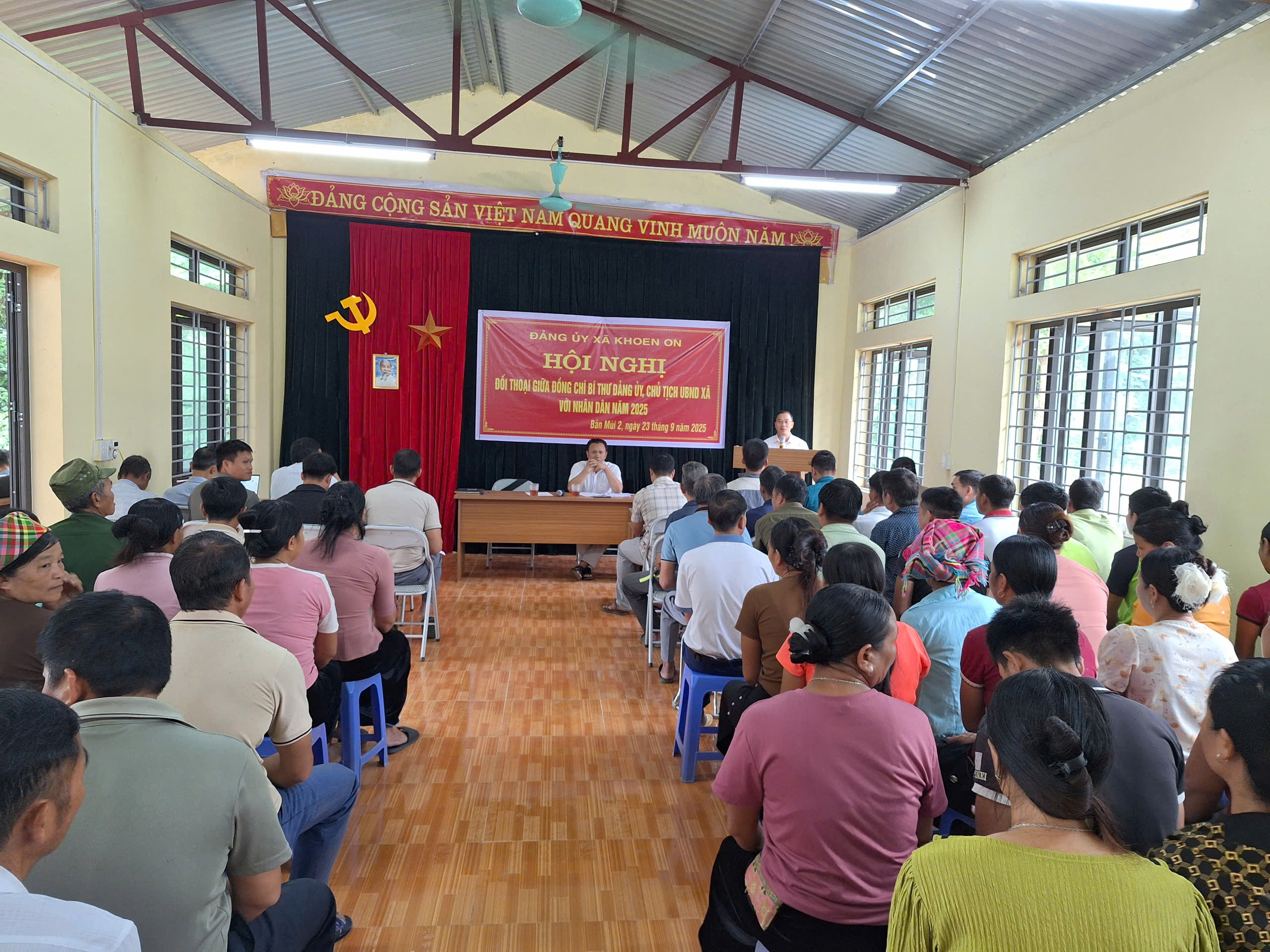 Sáng ngày 23/9/2025, tại nhà văn hóa bản Mùi 1 xã Khoen On, Đảng ủy, Ủy ban nhân dân xã Khoen On tổ chức Hội nghị đối thoại giữa Bí thư Đảng ủy; Chủ tịch UBND xã với Nhân dân bản On 1, bản Mùi 1, Mùi 2. Dự và chủ trì hội nghị có đồng chí Trịnh Ngọc Hải - Bí thư Đảng ủy, Chủ tịch HĐND xã; đồng chí Phạm Văn Bốn - Phó Bí thư, Chủ tịch UBND xã; đại diện Ủy ban MTTQ VN, các đoàn thể, trưởng bản, bí thư chi bộ và 112 cử tri đại diện Nhân dân 03 bản.