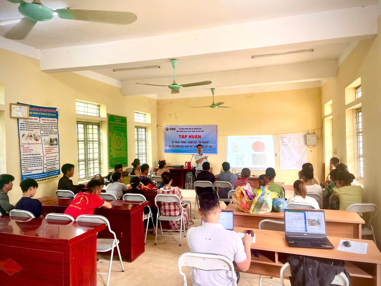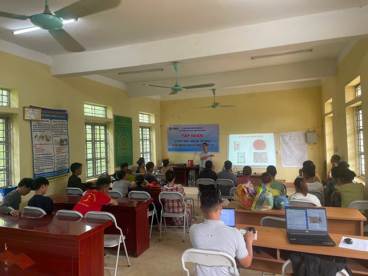 Ngày 26/9/2025, tại Nhà văn hóa bản Tà Lồm, Ban triển khai hoạt động Dự án CWS xã Khoen On đã tổ chức lớp tập huấn “Hướng dẫn kỹ thuật trồng, chăm sóc, thu hoạch sản phẩm và lựa chọn hạt giống cho cây lạc”. Lớp tập huấn có 29 học viên tham dự, gồm các hộ dân bản Tà Lồm.