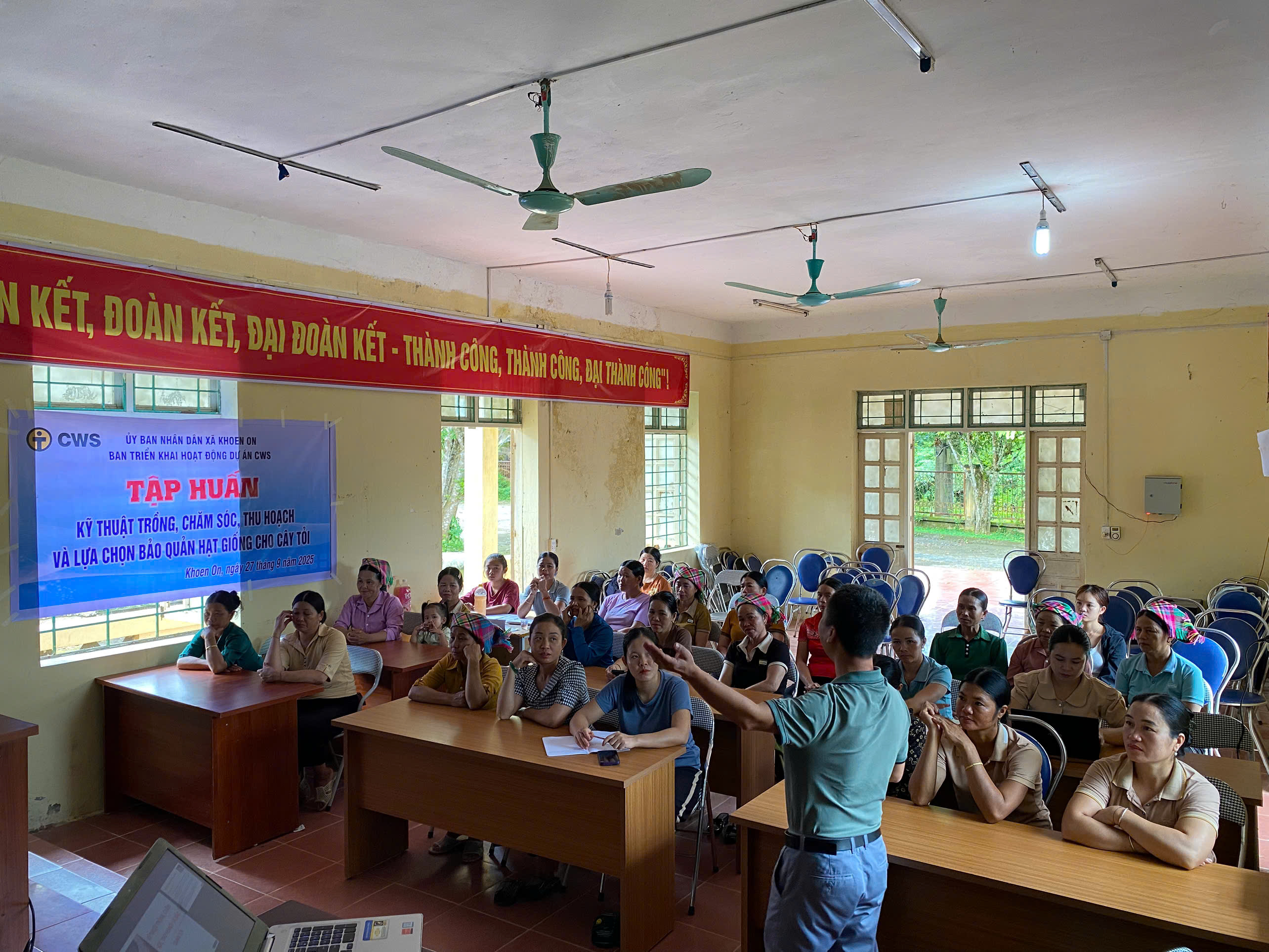 Ngày 27/9/2025, tại Nhà văn hóa bản Co Cai, Ban triển khai hoạt động Dự án CWS xã Khoen On đã tổ chức lớp tập huấn “Hướng dẫn kỹ thuật trồng, chăm sóc, thu hoạch sản phẩm và lựa chọn bảo quản giống cây tỏi” cho 27 học viên là các hộ dân bản Co Cai, bản Nam.