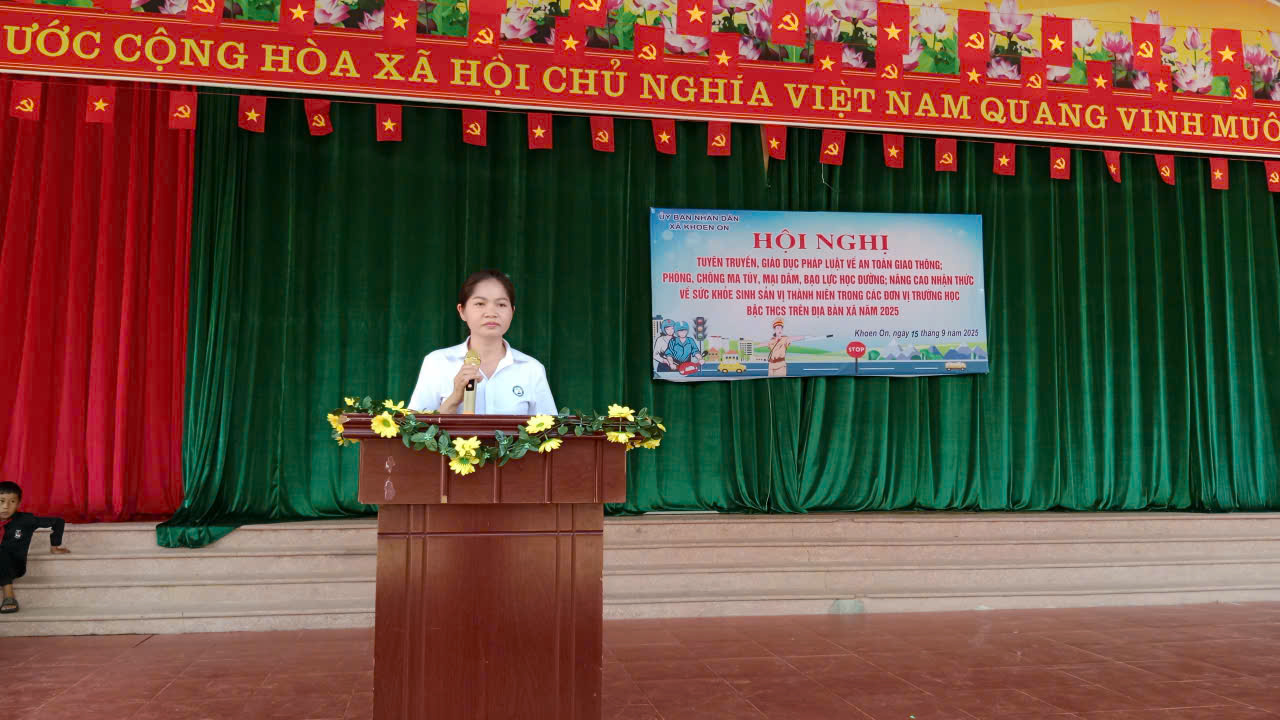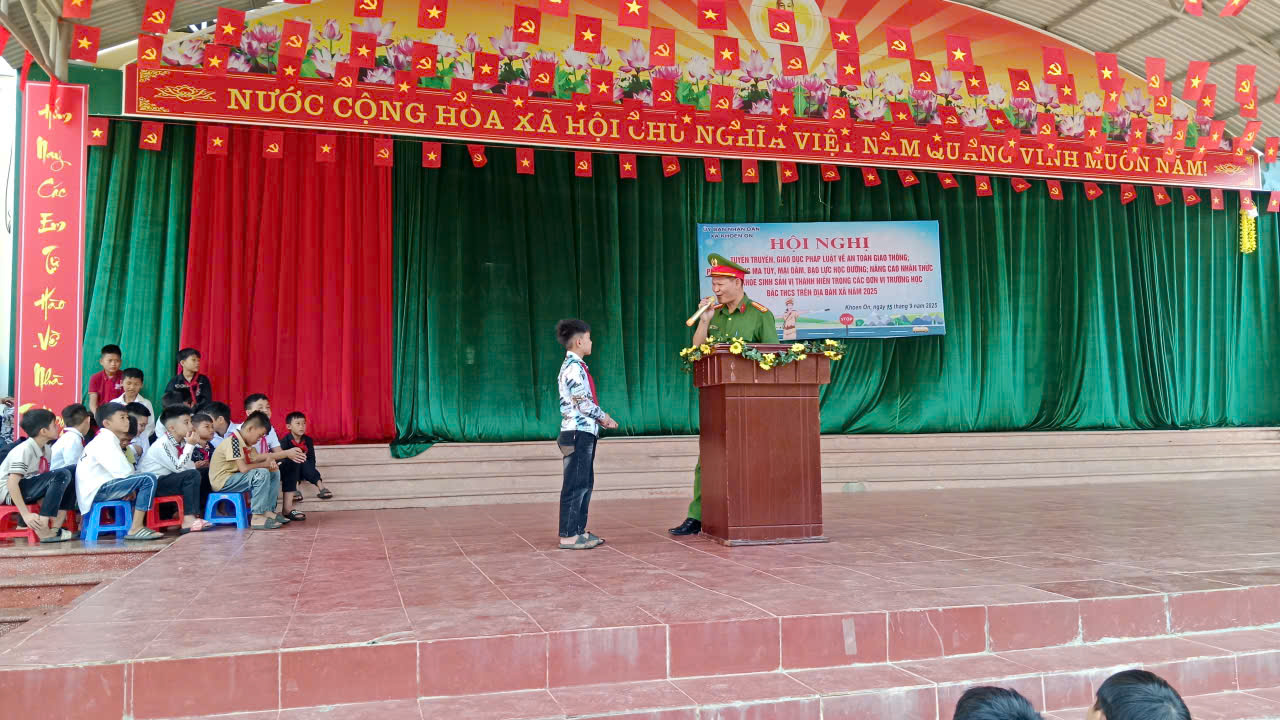 Tại buổi tuyên truyền Lãnh đạo UBND xã, Công an xã, các phòng chuyên môn, Trạm y tế xã, đã triển khai tới các thầy cô giáo, học sinh về: An toàn giao thông, hướng dẫn kỹ năng tham gia giao thông an toàn cho học sinh, phổ biến tác hại và cách phòng tránh ma túy, mại dâm, bạo lực học đường. Trang bị kiến thức về sức khỏe sinh sản vị thành niên, kỹ năng phòng tránh các bệnh xã hội, tảo hôn và kết hôn cận huyết thống. Giáo dục học sinh kỹ năng sống, kỹ năng từ chối, xây dựng lối sống lành mạnh, “Tuổi trẻ học đường sống đẹp - sống có ích”.