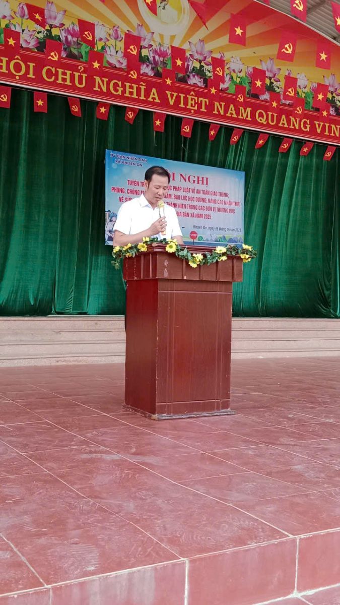 Thực hiện Kế hoạch số 46/KH-UBND ngày 11/9/2025 của UBND xã Khoen On về việc tuyên truyền, giáo dục pháp luật về an toàn giao thông; phòng, chống ma túy, mại dâm, bạo lực học đường; nâng cao nhận thức về sức khỏe sinh sản vị thành niên trong các đơn vị trường học bậc THCS trên địa bàn xã, sáng ngày 15/9/2025, tại Trường THCS Ta Gia, UBND xã Khoen On tổ chức buổi tuyên truyền, giáo dục pháp luật và kỹ năng sống cho giáo viên, học sinh, tham dự buổi tuyên truyền có đồng chí Nguyễn Anh Dũng - PCT. UBND xã, đại diện các phòng chuyên môn, Công an xã, Trạm y tế xã và đông đủ các thầy, cô giáo và học sinh Trường THCS Ta Gia.