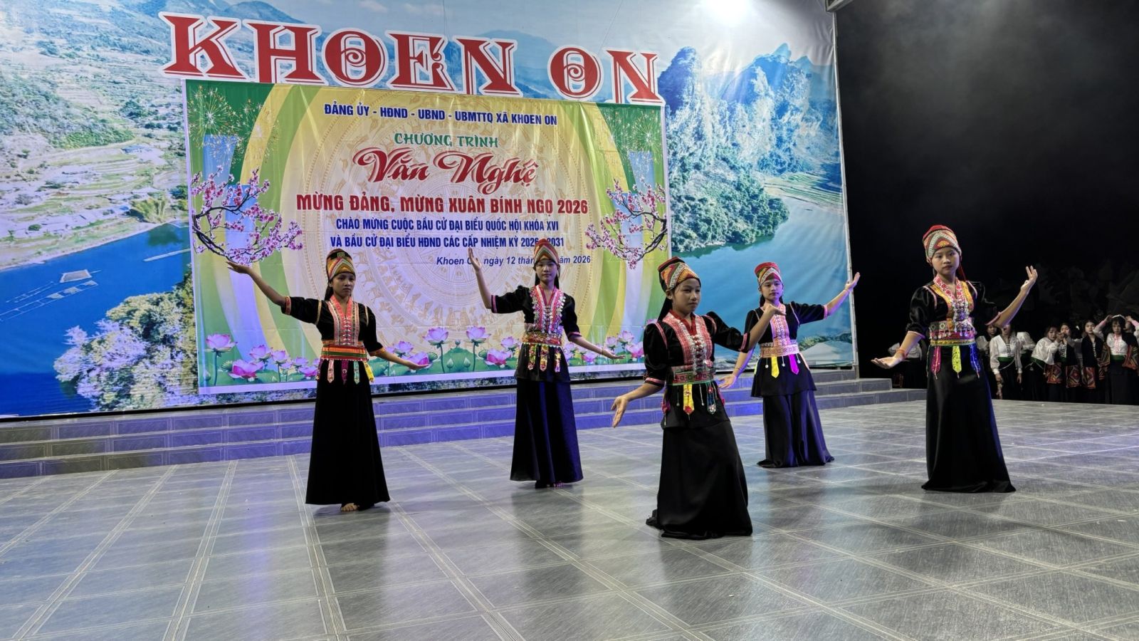 Ngày 12/02, UBND xã Khoen On tổ chức Chương trình văn nghệ mừng Đảng, mừng xuân Bính Ngọ 2026; Chào mừng cuộc bầu cử đại biểu Quốc hội khóa XVI và bầu cử HĐND các cấp nhiệm kỳ 2026 - 2031. Dự chương trình văn nghệ có đồng chí Lò Việt Hưng - Phó Bí thư Thường trực Đảng ủy xã; đồng chí Phạm Văn Bốn - Phó Bí thư Đảng ủy, Chủ tịch UBND xã; Lãnh đạo HĐND, UBND, Ủy ban MTTQ Việt Nam xã; đại biểu các ban ngành, đoàn thể cùng đông đảo nhân dân trên địa bàn.