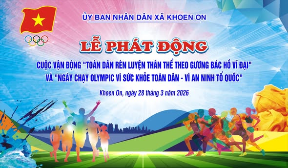 Vào 15 giờ 00 phút, ngày 28/3/2026 tại sân chợ Thẳm Củng, xã Khoen On sẽ tổ chức Ngày hội Olympic năm 2026, với các nội dung: Lễ phát động phong trào “Toàn dân rèn luyện thân thể theo gương Bác Hồ vĩ đại” và chạy đồng hành tối thiểu 01 km. Đây là hoạt động thiết thực nhằm tiếp tục lan tỏa phong trào rèn luyện thể dục, thể thao trong Nhân dân, góp phần nâng cao sức khỏe và chất lượng cuộc sống.